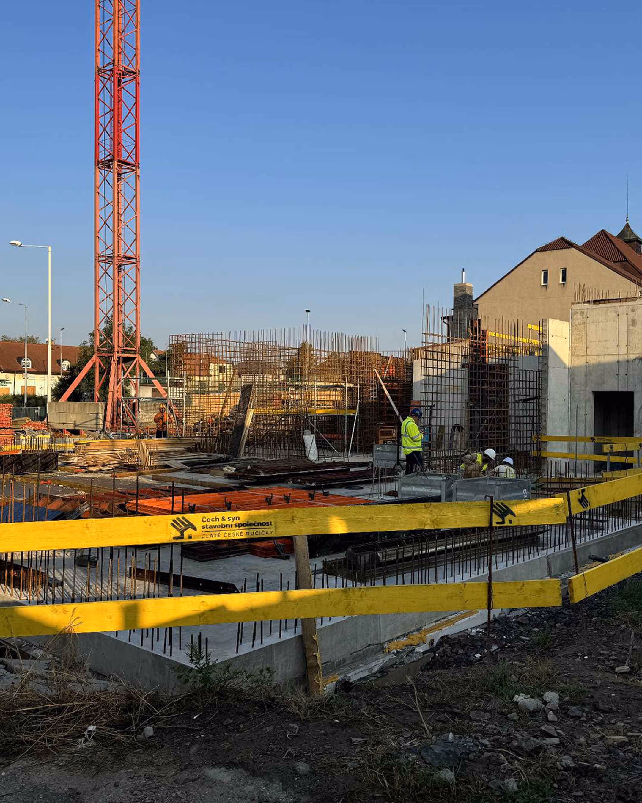 Stavební práce na developerském projektu Blok 12 se posouvají dle plánu a nyní probíhá zakládání základů. Na fotografiích je vidět postupný vývoj stavby, která roste z úrovně terénu a nabírá své první obrysy. Tým stavebníků pečlivě pracuje na přípravě základové desky a dalších klíčových struktur, které zajistí stabilitu budovy.